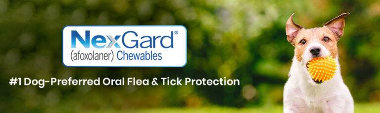 NexGard is a beef-flavoured oral chew that provides monthly flea and tick protection for dogs.